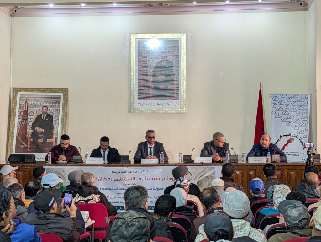 نظمت جمعية تجار إقليم خريبكة، اليوم الخميس 12 فبراير 2026، يوماً تحسيسياً بمناسبة شهر رمضان الأبرك، بملحقة غرفة التجارة بخريبكة، تحت شعار: «رمضان مسؤولية مشتركة: الالتزام بالسلامة الغذائية وجودة المنتجات».