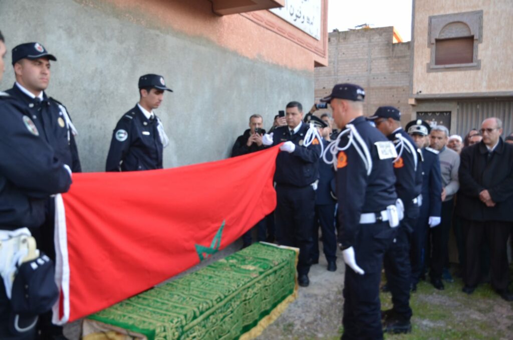 وبعد أداء صلاة الجنازة، تم تسليم العلم الوطني وصورة الفقيد إلى أسرته في شخص زوجته، كعربون وفاء واعتراف من المديرية العامة للأمن الوطني، نظير ما أسداه من خدمات جليلة خلال أدائه لواجبه المهني، وتقديرًا لتفانيه في حماية أمن المواطنين وسلامة ممتلكاتهم.